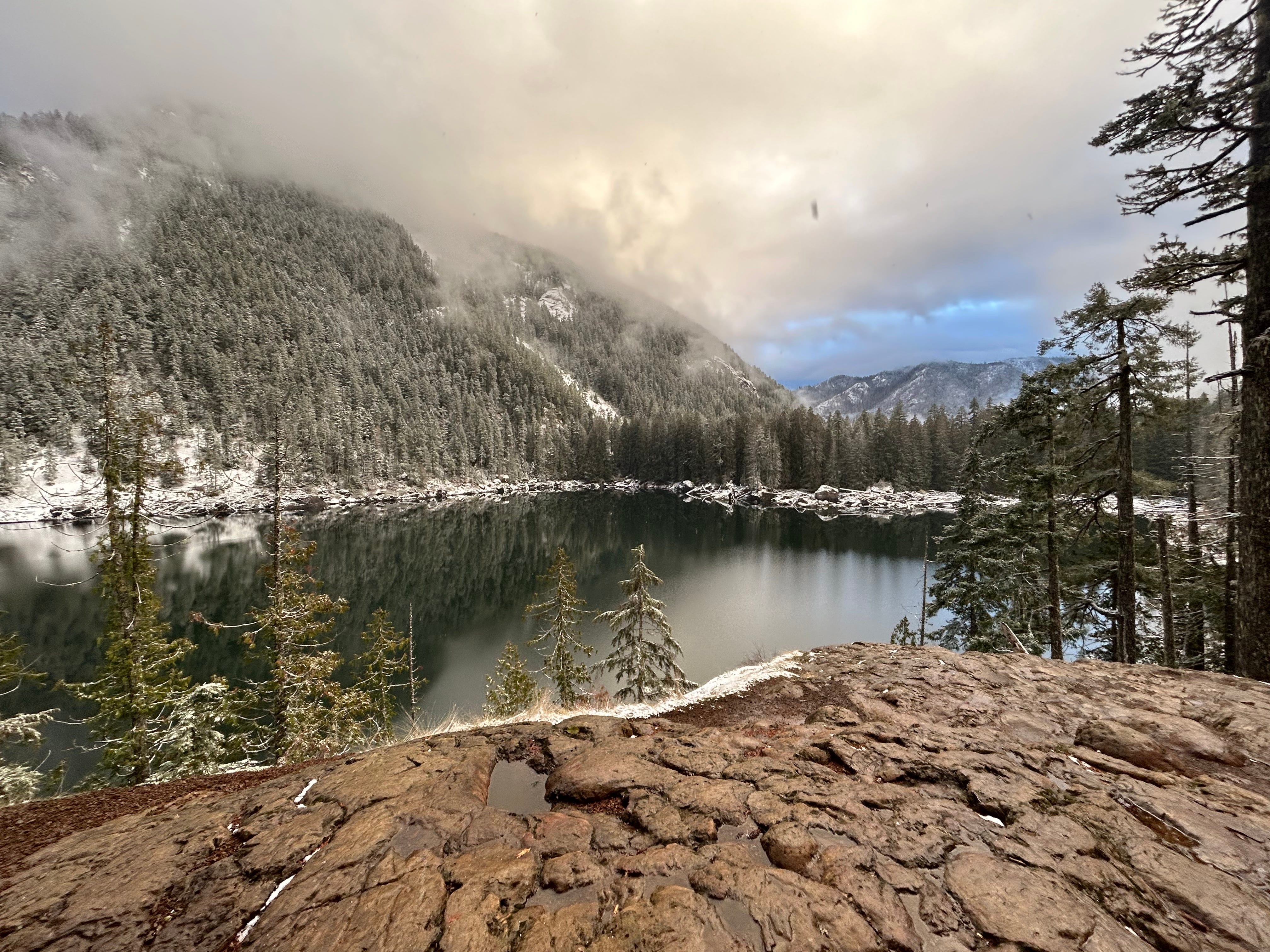 Lower Lena Lake features a rare low-altitude alpine lake (1800ft), which is deep and beautiful and has several lovely campsites. Given its relatively short length (3.7 miles one-way) and moderate gain (1300ft), it is exceedingly popular with novice hikers, so much so that it turned into a kind of newbie-hiker superhighway during Covid years. The first time I went, it was a beautiful weekend in the middle of winter, but it was still packed on the trail. Given that I was looking for solitude, this was not my scene, and I left assuming I’d never return. However, return I did on a cold and snowy Monday a year later, and I had the trail — and lake! — completely to myself.